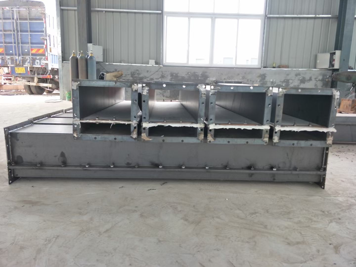 (7)為了使上槽內(nèi)余氣及時排出,在斜槽尾部上方設(shè)排氣管或安裝布袋排氣,每節(jié)上槽體應(yīng)設(shè)1~2個排氣口,并用過濾層、鐵絲網(wǎng)封口。