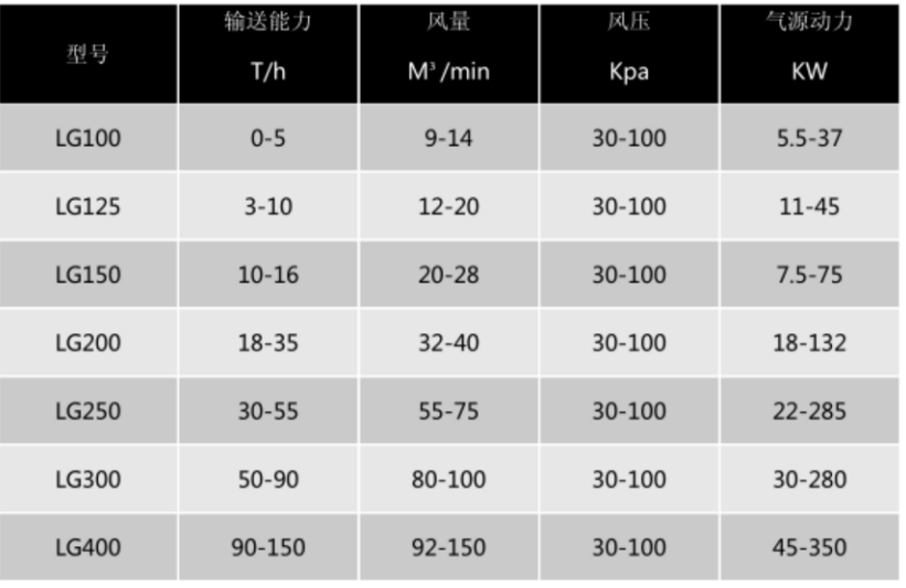 氣力輸送泵參數(shù)