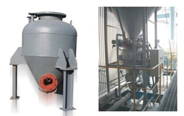 銳馳倉(cāng)式泵是在高壓下輸送粉狀物料的一種比較可靠的密相動(dòng)壓氣力輸送裝置。倉(cāng)式泵的卸料方式有兩種,其中底部出料是最常用方式,罐內(nèi)物料通過(guò)圓錐面充氣槽充氣、噴嘴噴氣或其它方法得以流態(tài)化;在底部設(shè)置流態(tài)化充氣板(層)可使物料在罐的上部卸出。輸送氣體在罐中不同輸入平面上分布情況取決于輸送物料性質(zhì)。
